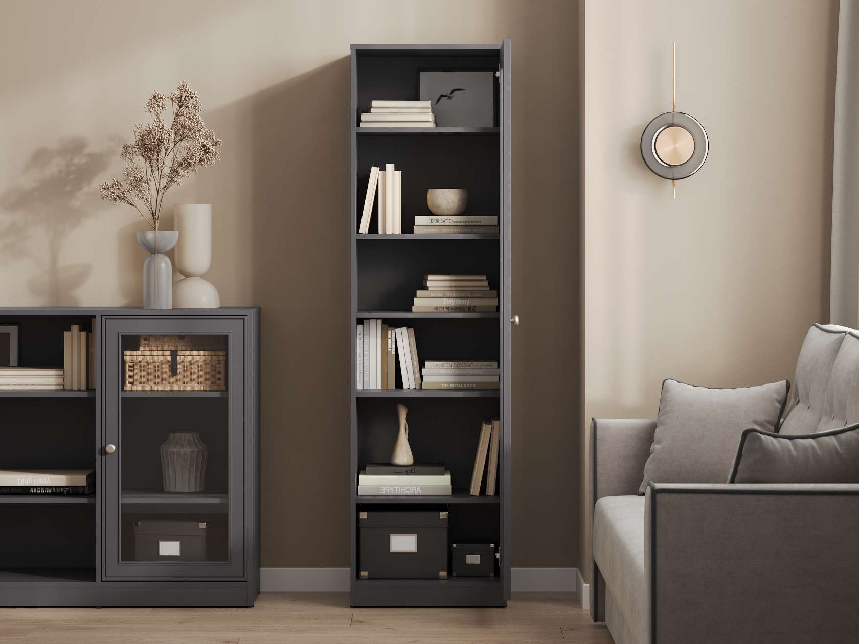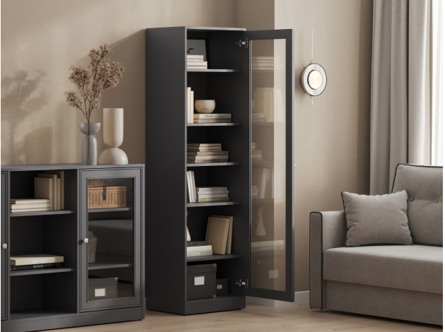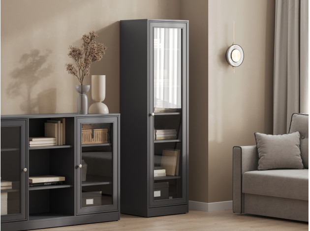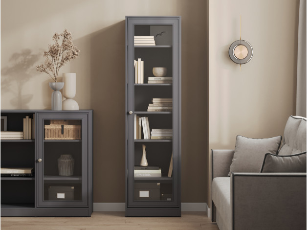 Шкаф-витрина Люси 1 дверь — практичное и стильное решение для организации домашней библиотеки. Классическое оформление с рамочными фасадами и ручками-кнопками будет уместно смотреться в рабочем кабинете, гостиной и других комнатах.