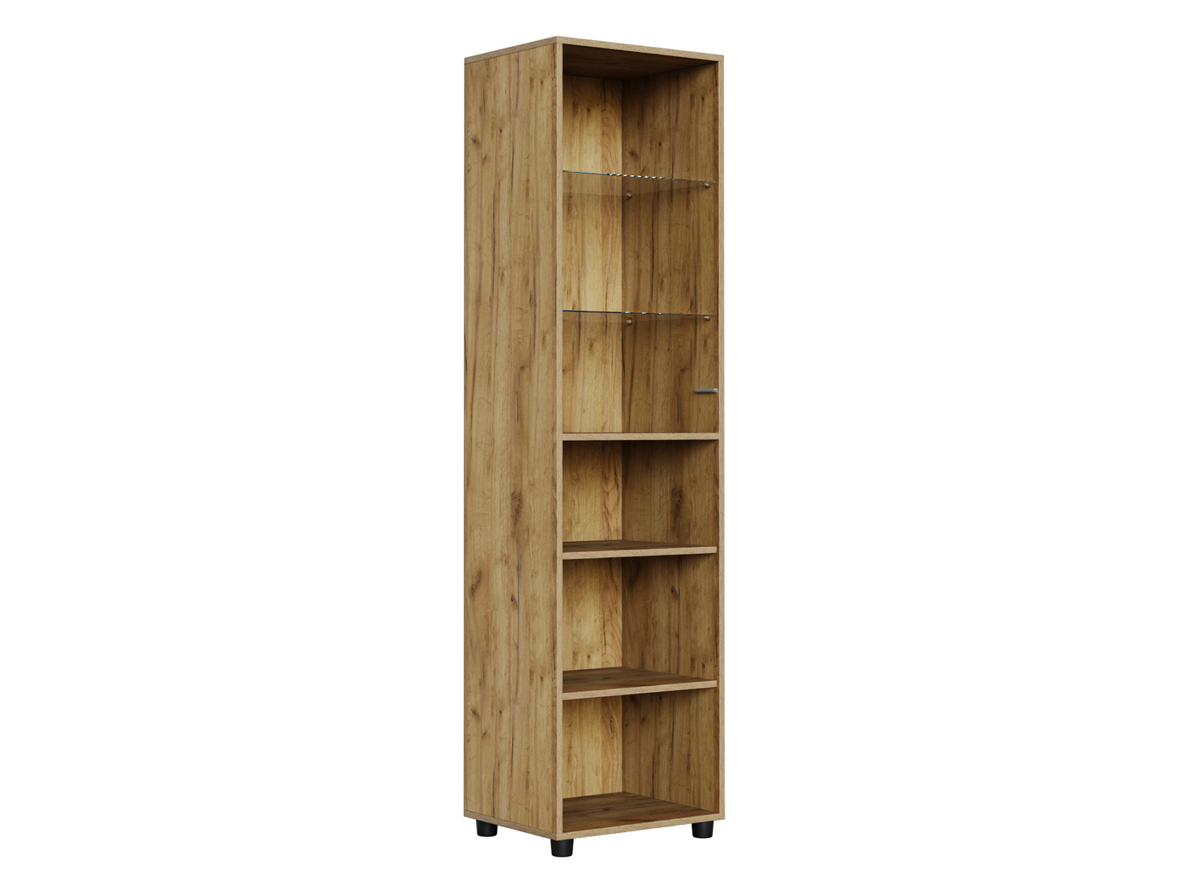 Шкаф-витрина Милан станет компактным украшением современной гостиной или квартиры-студии. Дверца со стеклянной вставкой откроет обзор на содержимое, защищая его от пыли и влаги. Нижний фасад выполнен из качественного экологичного материала и украшен вертикальной фрезеровкой.
