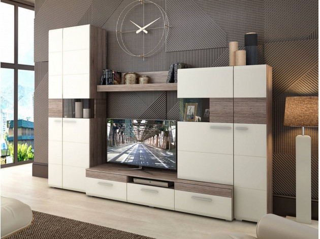 Надстройка-витрина Мишель-3 практично и оригинально дополнит ТВ-тумбу шириной 180 см из одноименной серии. Специально предусмотренное свободное пространство внизу вмещает ровно треть тумбы. Таким образом, пространство значительно экономится, а функциональность совсем не страдает.