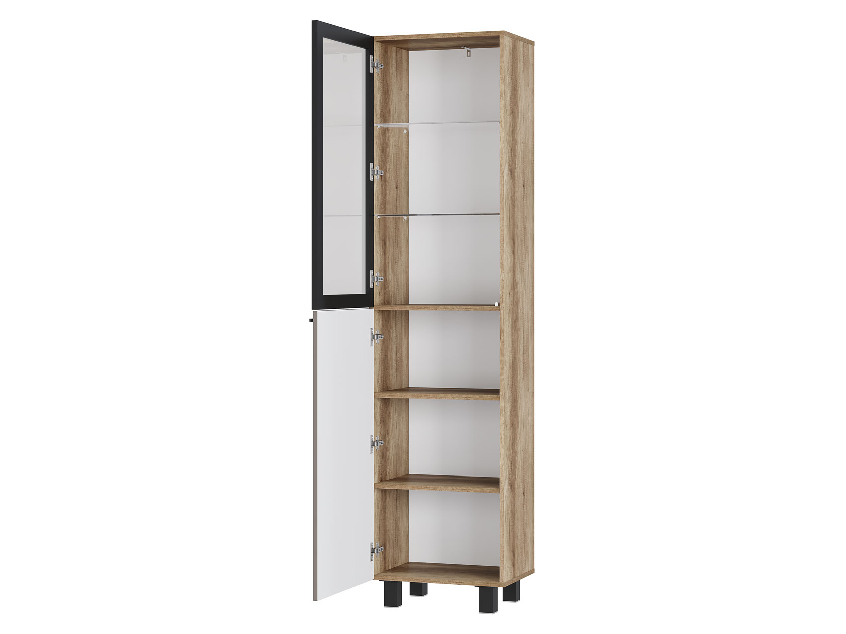 Шкаф-витрина Олива станет элегантным дополнением гостиной и организует хранение самых разных вещей. На верхних полках можно расположить фотографии, книги и стильный декор, который украсит интерьер. Стеклянная дверца создает эффект свободного пространства, при этом защищает содержимое от пыли.
