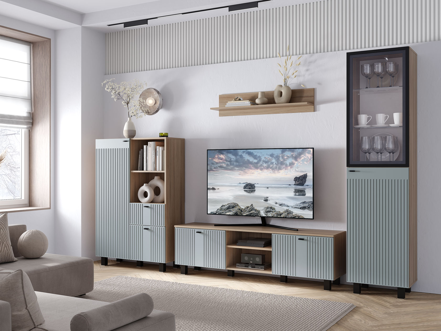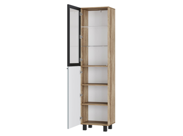 Шкаф-витрина Олива станет элегантным дополнением гостиной и организует хранение самых разных вещей. На верхних полках можно расположить фотографии, книги и стильный декор, который украсит интерьер. Стеклянная дверца создает эффект свободного пространства, при этом защищает содержимое от пыли.