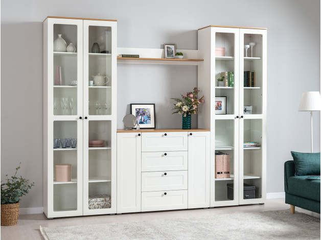 Шкаф-витрина Остин — отличный способ продемонстрировать красивую посуду, книги и декор, защитив их от пыли и влаги. Стеклянные вставки привлекают внимание к содержимому и придают мебели визуальную легкость. Шкаф отлично смотрится как в просторной, так и небольшой комнате.