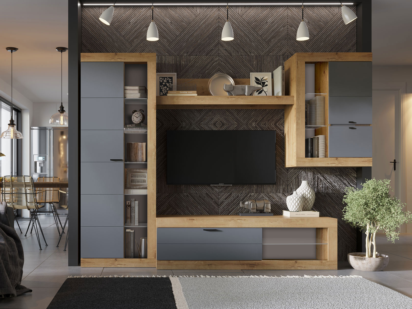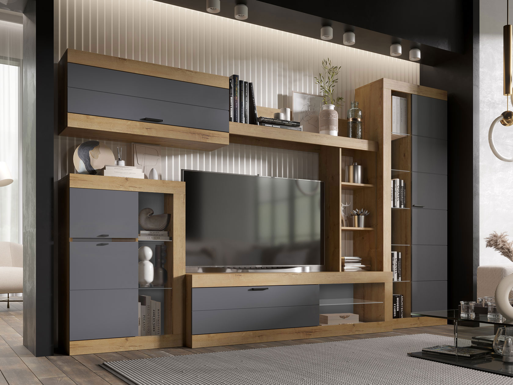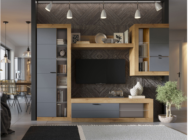 Шкаф-витрина Прага Макси Дуб Вотан / Графит Софт Без подсветки