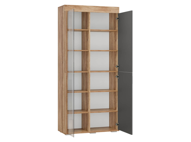 Шкаф-витрина Прима станет практичным дополнением интерьера. Сочетание матовых фасадов со стеклянными вставками создает стильный акцент. Вместительное пространство с большим количеством полок позволяет хранить посуду для сервировки, красивые вазы и предметы декора.