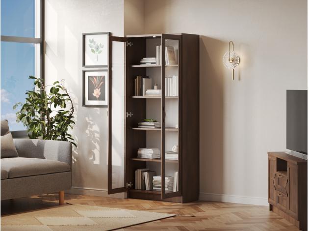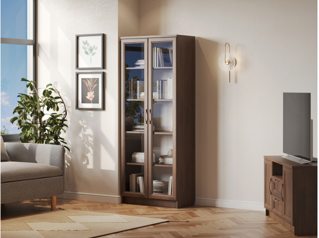 Шкаф-витрина Марсель Миди подойдет для любой комнаты, где нужно организовать хранение ценных вещей: коллекционных книг, посуды для особых случаев или предметов декора. Стеклянные фасады защитят содержимое от пыли и солнечного света. Благодаря петлям с доводчиками дверцы закрываются плавно и бесшумно.