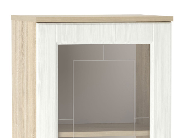 Шкаф-витрина Оливия Лайт гармонично дополнит интерьер гостиной. Комбинация глухого фасада и стеклянной вставки позволит удачно реализовать возможность выставить праздничную посуду или любимые сувениры и скрыть от посторонних глаз личные вещи.