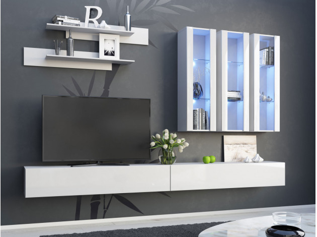 Шкаф-витрина Поинт Белый / Белый глянец / Стекло С блоком питания