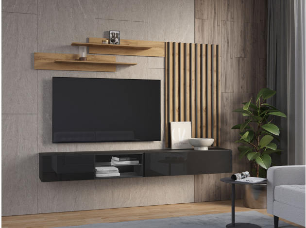 Шкаф-витрина Поинт Дуб Вотан / Стекло С блоком питания