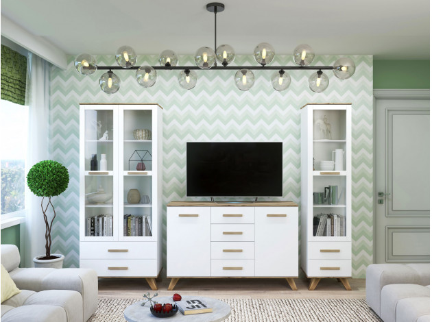 Шкаф-витрина Вега Скандинавия создаст уютную и функциональную обстановку на просторной кухне или в гостиной. Внутреннее наполнение представлено рядом полочек и ящиками полного выдвижения. Высокие ножки не перегружают обстановку и позволяют удобно проводить уборку. Петли с доводчиком обеспечат плавное и бесшумное закрывание дверок.