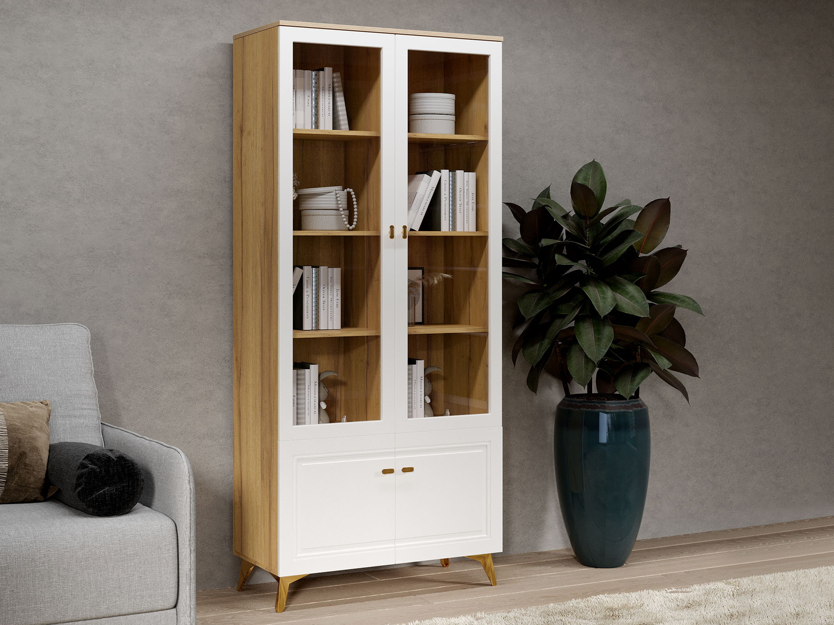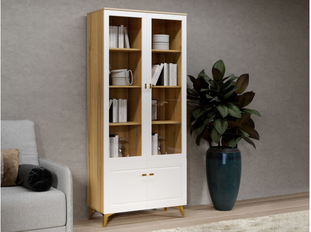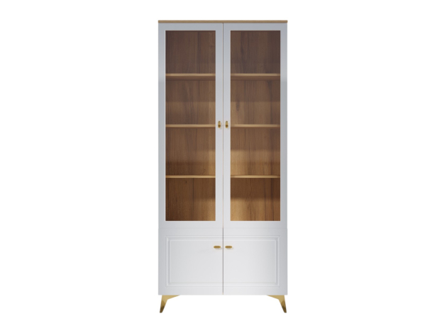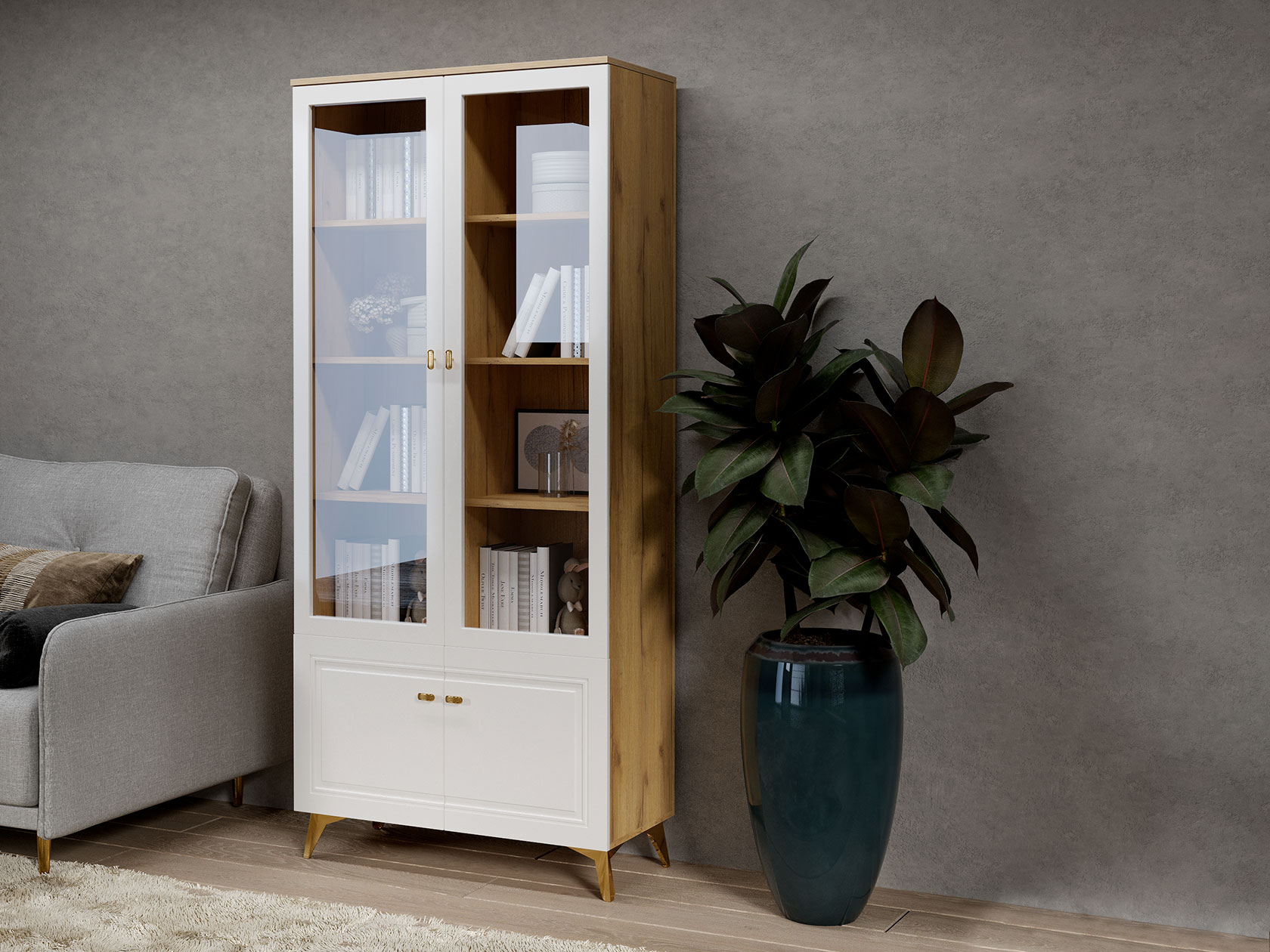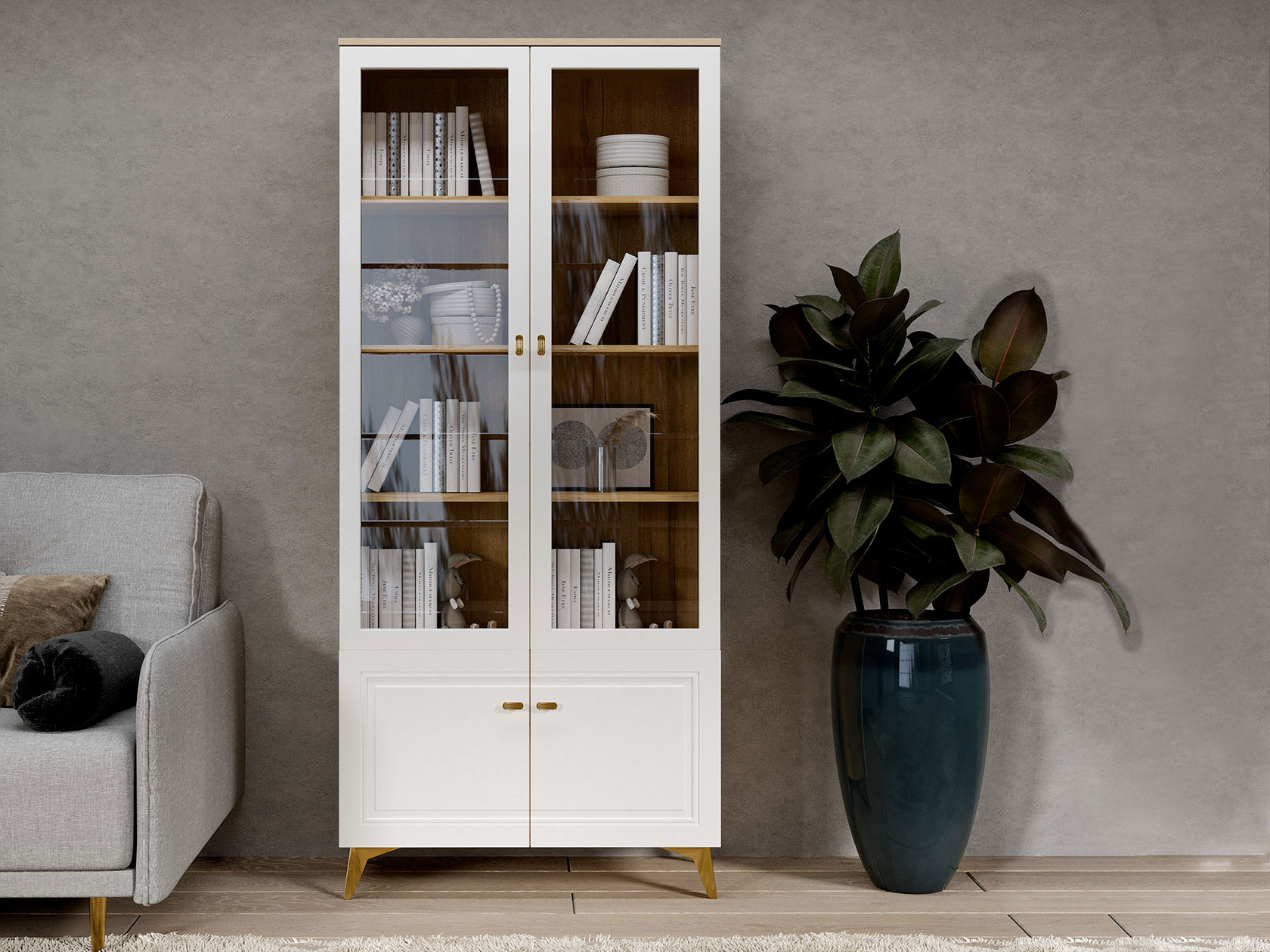 Шкаф-витрина Вега Сапфир 2 двери подойдет для любой комнаты, где нужно организовать эффектное хранение ценных вещей: коллекционных книг, посуды для особых случаев или предметов декора. Стекло защитит содержимое от пыли и солнечного света. Ножки в цвет фурнитуры дополняют облик модели, создавая интересные акценты.