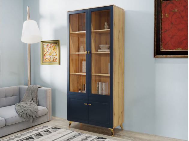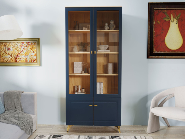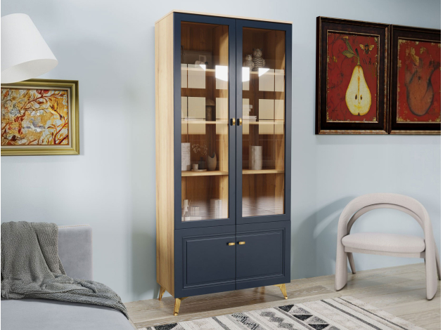 Шкаф-витрина Вега Сапфир 2 двери подойдет для любой комнаты, где нужно организовать эффектное хранение ценных вещей: коллекционных книг, посуды для особых случаев или предметов декора. Стекло защитит содержимое от пыли и солнечного света. Ножки в цвет фурнитуры дополняют облик модели, создавая интересные акценты.