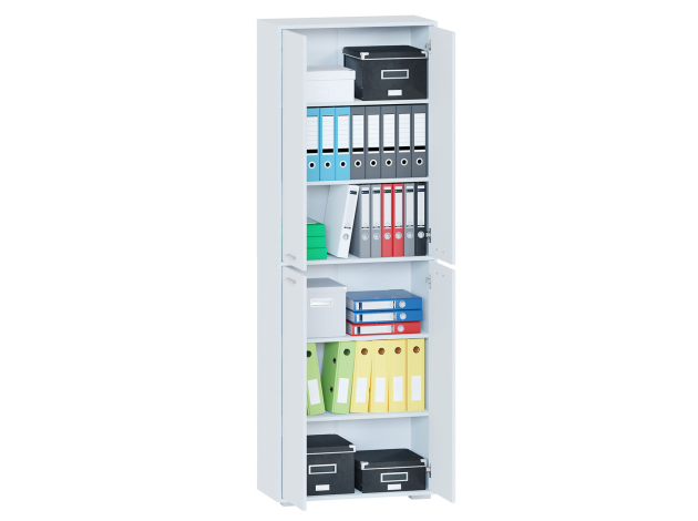 Стеллаж Кеплар позаботится об упорядоченном хранении документов и различных офисных принадлежностей. На открытых полках и за прозрачными дверцами удобно разместить то, что часто требуется для ежедневной работы, а на полках за глухими фасадами — распределить канцелярию, коробки и архивы. Минималистичный дизайн идеально подходит для современного интерьера.