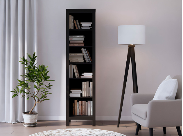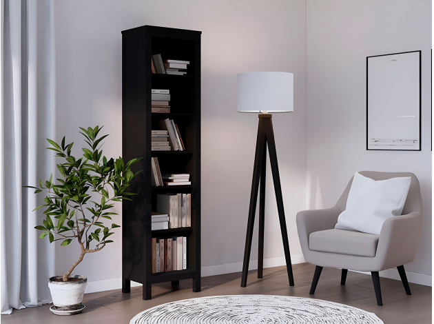 Хороший стеллаж. Прям хороший. материал и обработка материала - все хорошо. фаски сняты. есть и шершавость местами, в основном гладкий. приятный натуральный цвет. чувствуется фактура дерева. боковинки приходят уже в сборе. стенки очень тонкие, но сделаны из натурального шпона. выглядит и ощущается стеллажик очень приятно. обработан внешне пропиткой. стеллаж полностью деревянный, кроме задней стенки (мдф). пахнет деревои. Очень классно упакован. продуманно и бережно укомплектованно: стяжки, винты, крепежи полок и прочее. есть шестигрниик. все в нужном количестве. икеевская инструкция, собирать легко, можно одному (он не тяжелый). В сборке нужна аккуратность, дерево мягкое. винты НЕ нужно утапливать более, чем показано в инструкции. Все 4 ножки регулируются, можно выставить. сам шкаф легкий по итогу поэтому, если дети и животные дома - лучше закрепить к стене, уголки есть в комплекте. если он пригружен книгами, а в доме только аккуратные взрослые - необязательно.