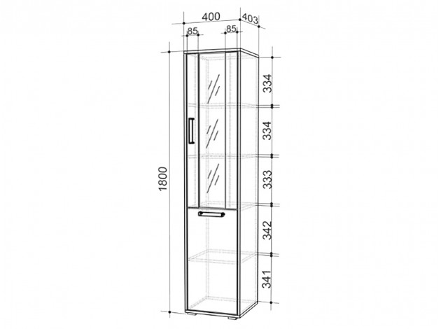 - Материалы: ЛДСП 16 мм, матированное стекло.