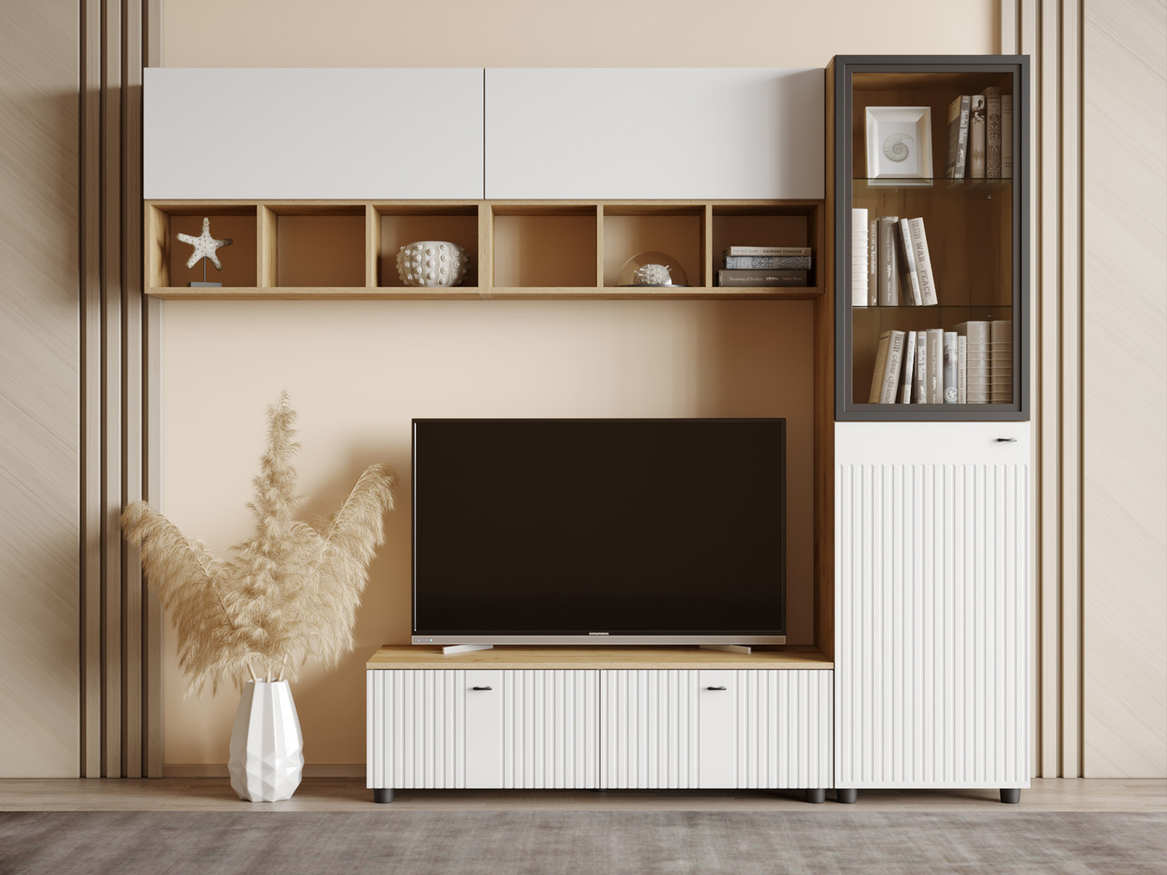 Стеллаж Милан — компактная модель с лаконичным дизайном. Древесный оттенок придает интерьеру особые теплоту и уют. На полках можно красиво расставить предметы декора или памятные вещи, которые подчеркнут индивидуальность обстановки.