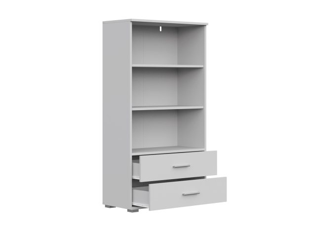 Стеллаж Рио 130 широкий отлично дополнит современный интерьер и создаст удобную систему хранения. Внутреннее пространство представлено полками, которые подходят для домашней библиотеки, коллекции посуды или предметов декора. В выдвижных ящиках можно спрятать коробки или текстиль.