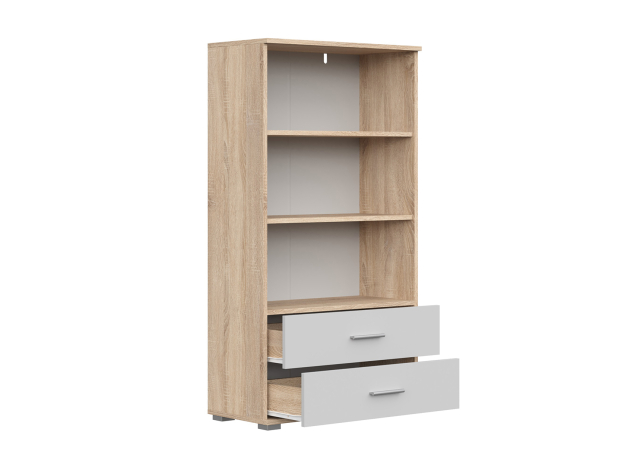 Стеллаж Рио 130 широкий отлично дополнит современный интерьер и создаст удобную систему хранения. Внутреннее пространство представлено полками, которые подходят для домашней библиотеки, коллекции посуды или предметов декора. В выдвижных ящиках можно спрятать коробки или текстиль.