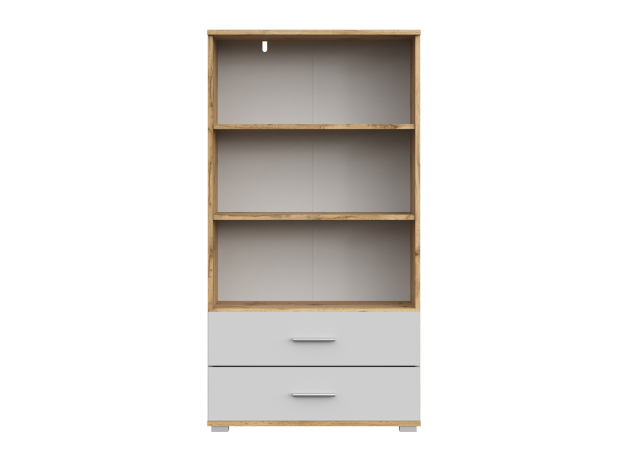 Стеллаж Рио 130 широкий отлично дополнит современный интерьер и создаст удобную систему хранения. Внутреннее пространство представлено полками, которые подходят для домашней библиотеки, коллекции посуды или предметов декора. В выдвижных ящиках можно спрятать коробки или текстиль.