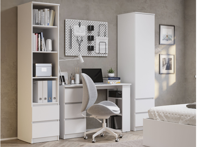 Стеллаж Симпл создаст эффект открытого пространства и придаст интерьеру ощущение легкости. На полках можно разместить книги, фоторамки, элементы декора и всё то, что удобно хранить в быстром доступе. Ящики подойдут для разных мелочей, которые хочется спрятать.