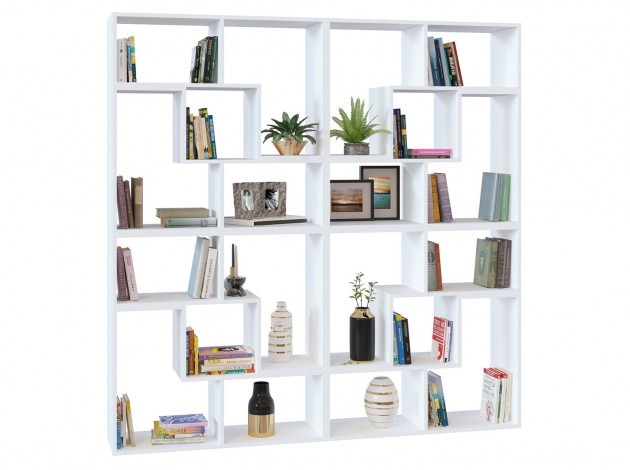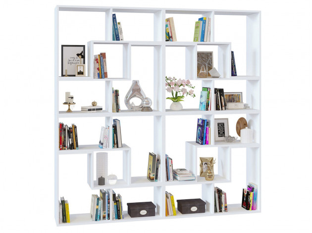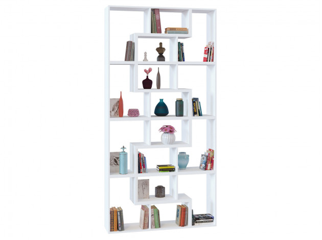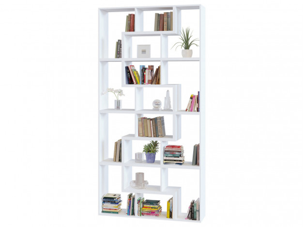 Вместительный стеллаж ПК-9-8, выполненный в необычной геометрии — стильный способ разнообразить интерьер. Модель будет полезным предметом меблировки в гостиной, спальне или рабочей зоне. Большое количество полочек разного размера позволяют хранить самые разные вещи и предметы в быстром доступе.