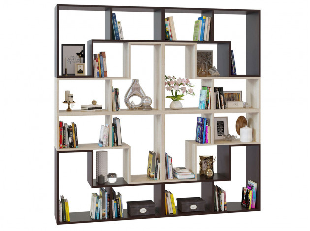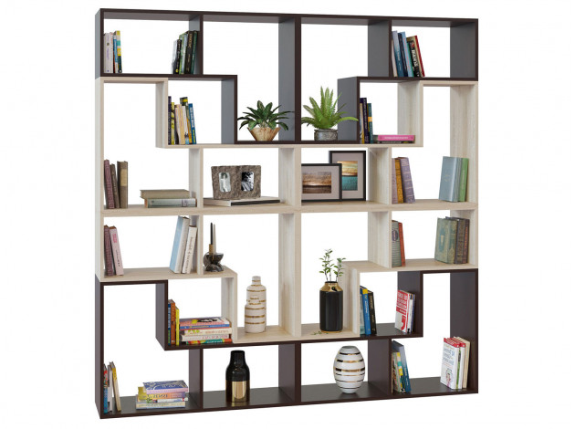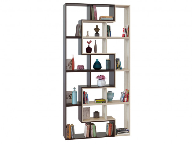 Вместительный стеллаж ПК-9-8, выполненный в необычной геометрии — стильный способ разнообразить интерьер. Модель будет полезным предметом меблировки в гостиной, спальне или рабочей зоне. Большое количество полочек разного размера позволяют хранить самые разные вещи и предметы в быстром доступе.