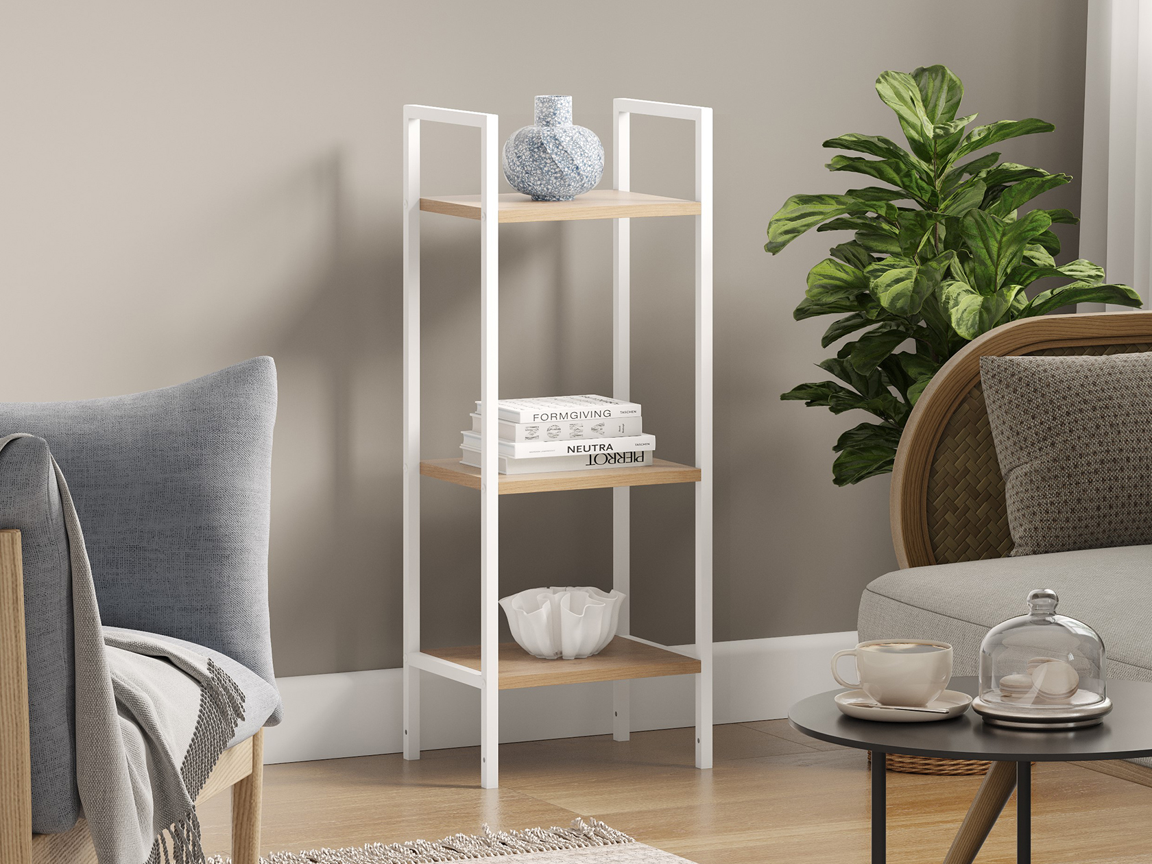 Стеллаж Стилвуд Миди Белый, металл / Дуб Крафт золотой, ЛДСП 30 см