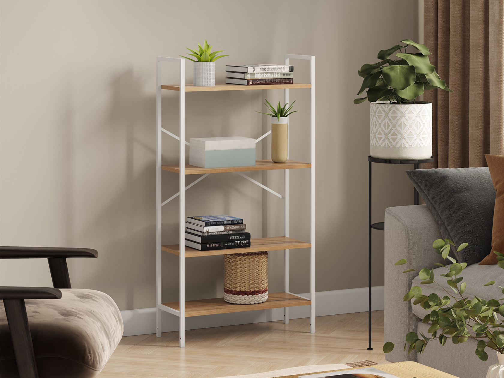 Стеллаж Стилвуд Белый, металл / Дуб Крафт золотой, ЛДСП 59 см
