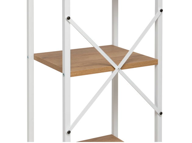 Стеллаж Стилвуд Макси удачно дополнит современное офисное или домашнее пространство. Модель с крестообразными вставками предоставит дополнительное место для бумаг, канцелярских принадлежностей и различных мелочей. Регулируемые опоры гарантируют устойчивость даже на полу с небольшими неровностями. Сочетание металла и дерева создает контраст в интерьере.
