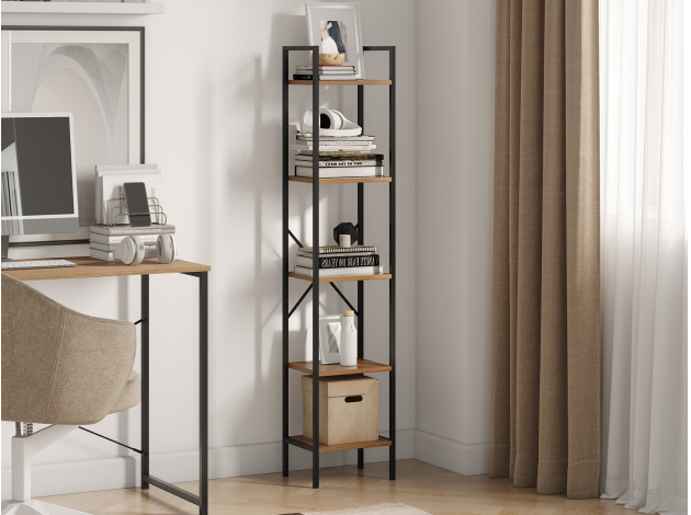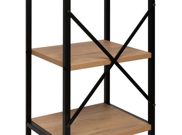 Стеллаж Стилвуд Макси удачно дополнит современное офисное или домашнее пространство. Модель с крестообразными вставками предоставит дополнительное место для бумаг, канцелярских принадлежностей и различных мелочей. Регулируемые опоры гарантируют устойчивость даже на полу с небольшими неровностями. Сочетание металла и дерева создает контраст в интерьере.