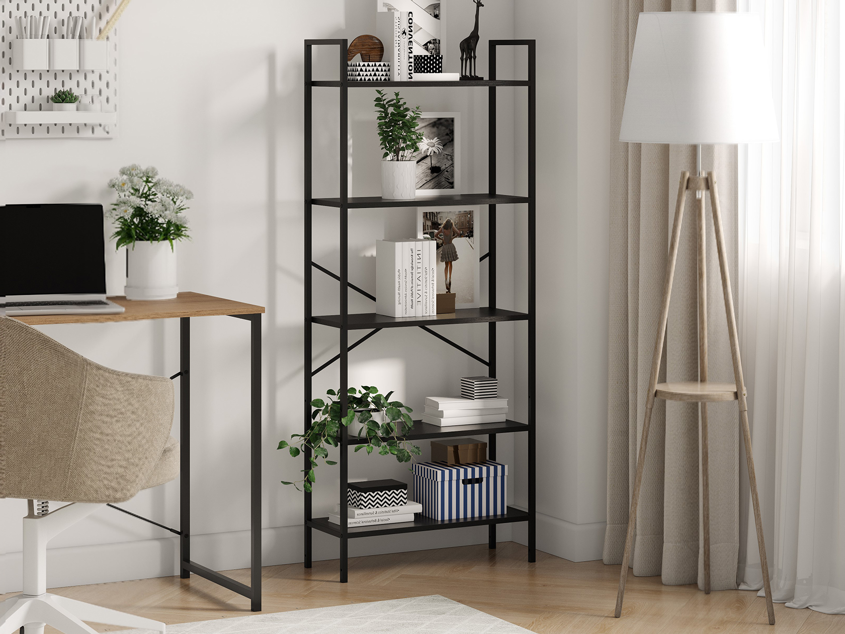 Стеллаж Стилвуд Макси удачно дополнит современное офисное или домашнее пространство. Модель с крестообразными вставками предоставит дополнительное место для бумаг, канцелярских принадлежностей и различных мелочей. Регулируемые опоры гарантируют устойчивость даже на полу с небольшими неровностями. Сочетание металла и дерева создает контраст в интерьере.