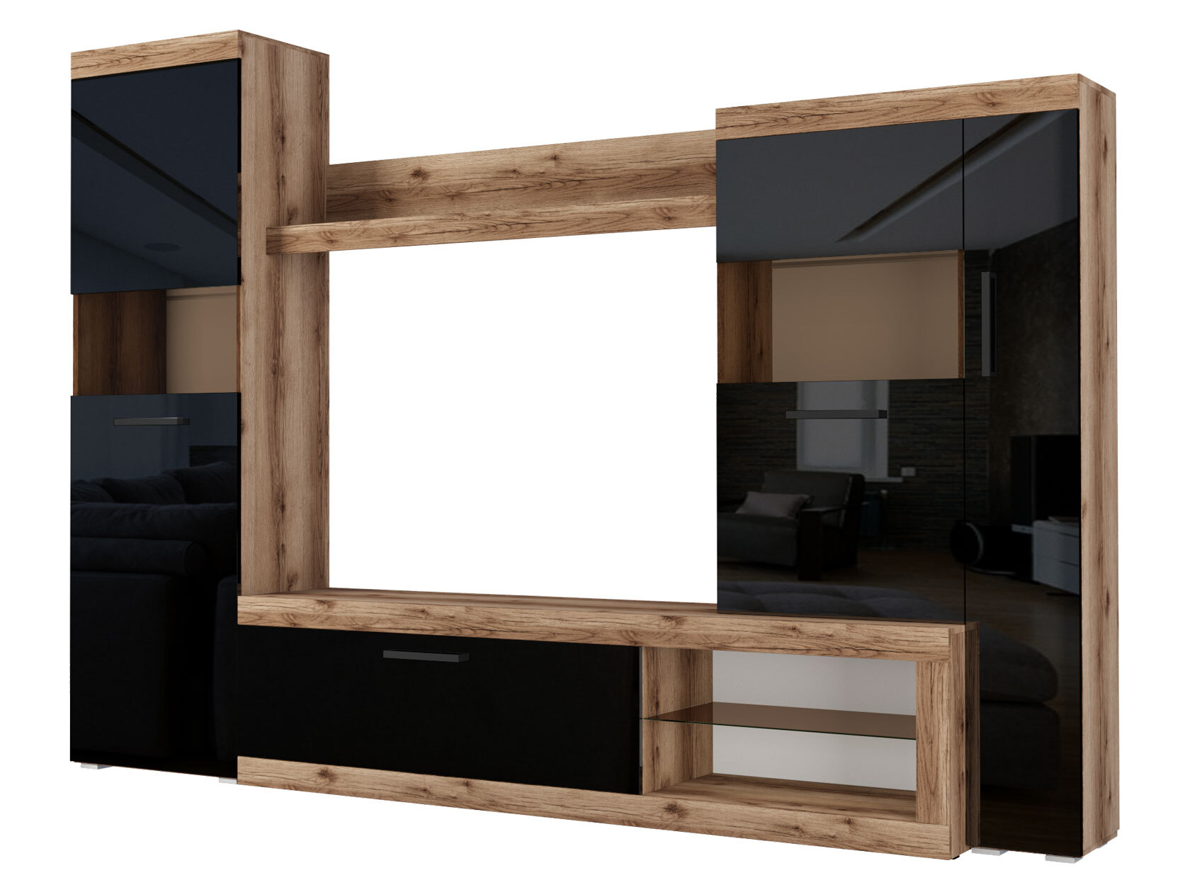 Гостиная Бастон комби Дуб Делано / Черный глянец