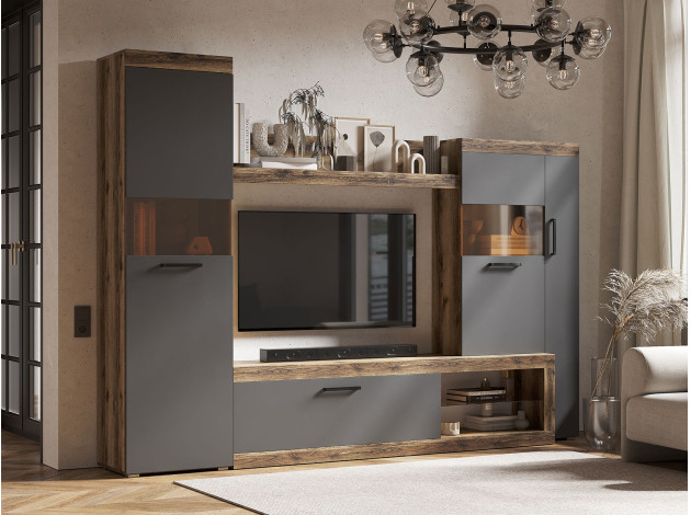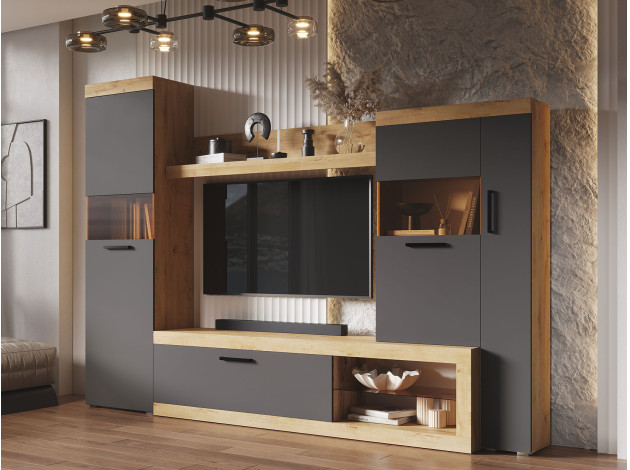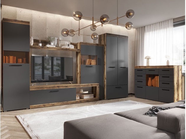 Гостиная Бастон комби Дуб Делано / Графит Софт
