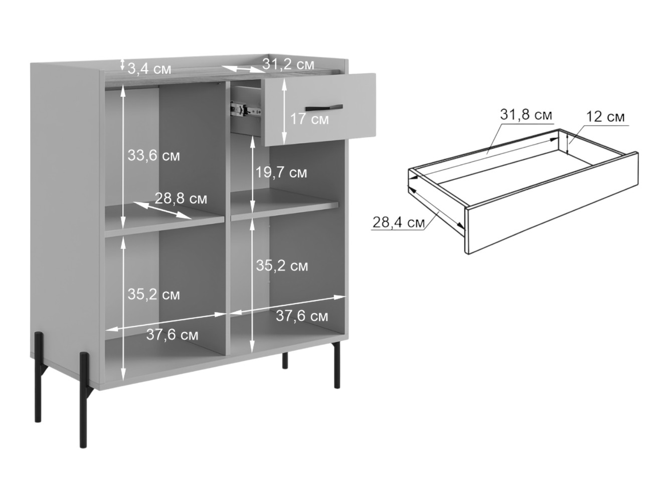 - Комод: 92 х 84 х 35 см.