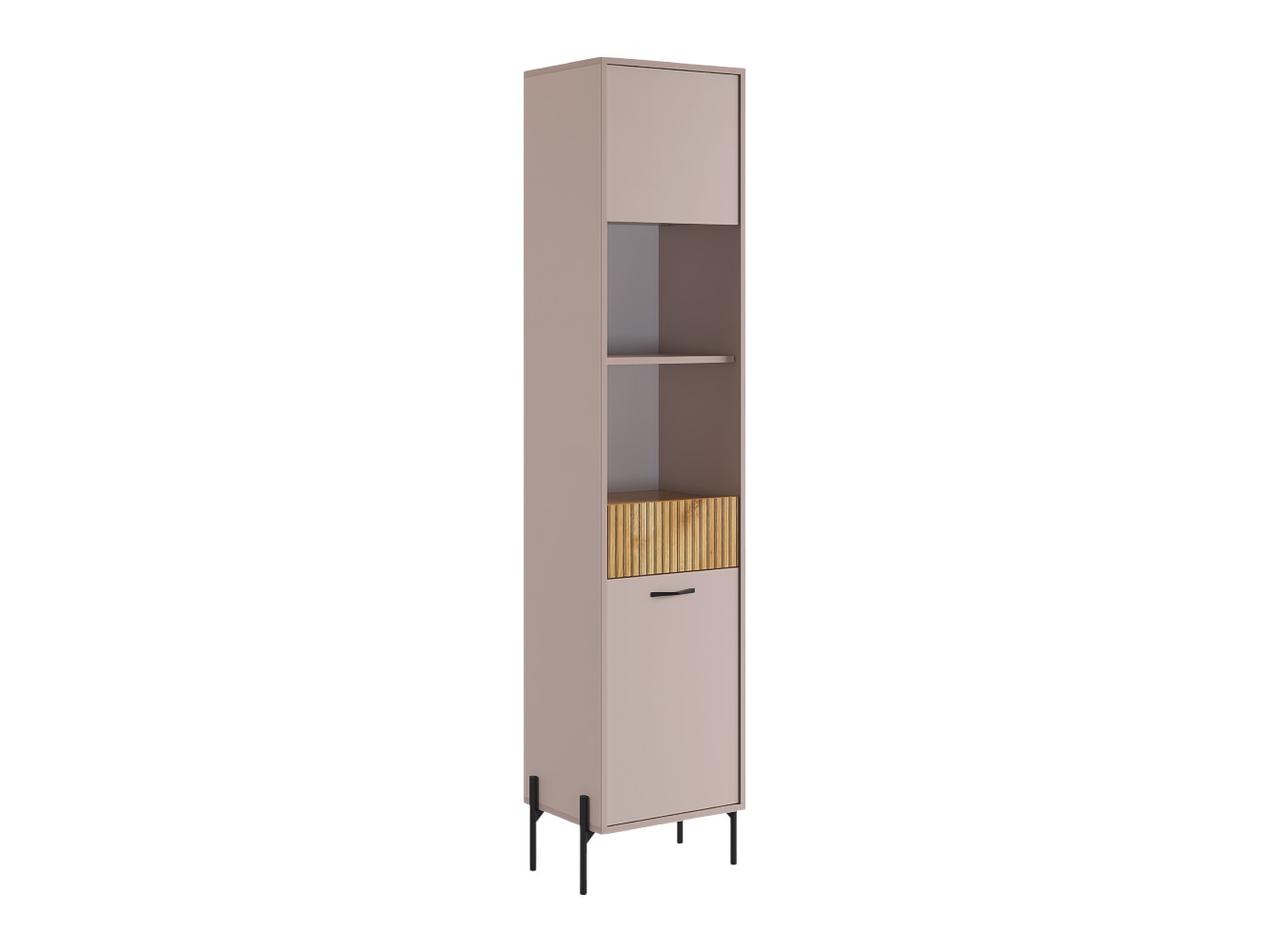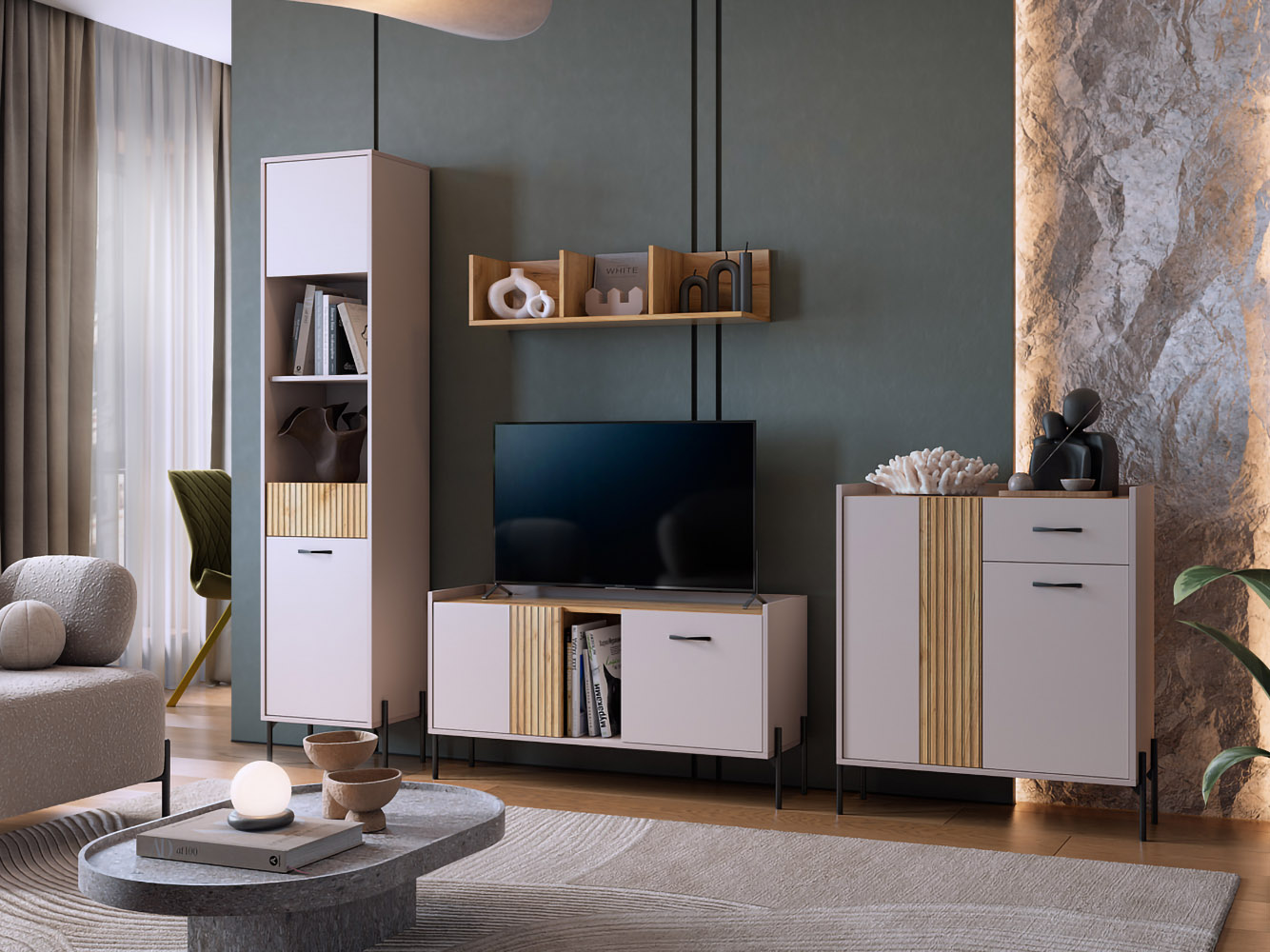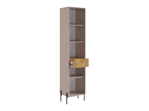 Гостиная Доминика со стеллажом создаст уют даже на ограниченной площади. Функциональный набор элементов позволит организовать хранение необходимых вещей, а также поможет найти место для широкоформатного телевизора. Вертикальные линии в оформлении фасадов — один из актуальных трендов современного интерьера.