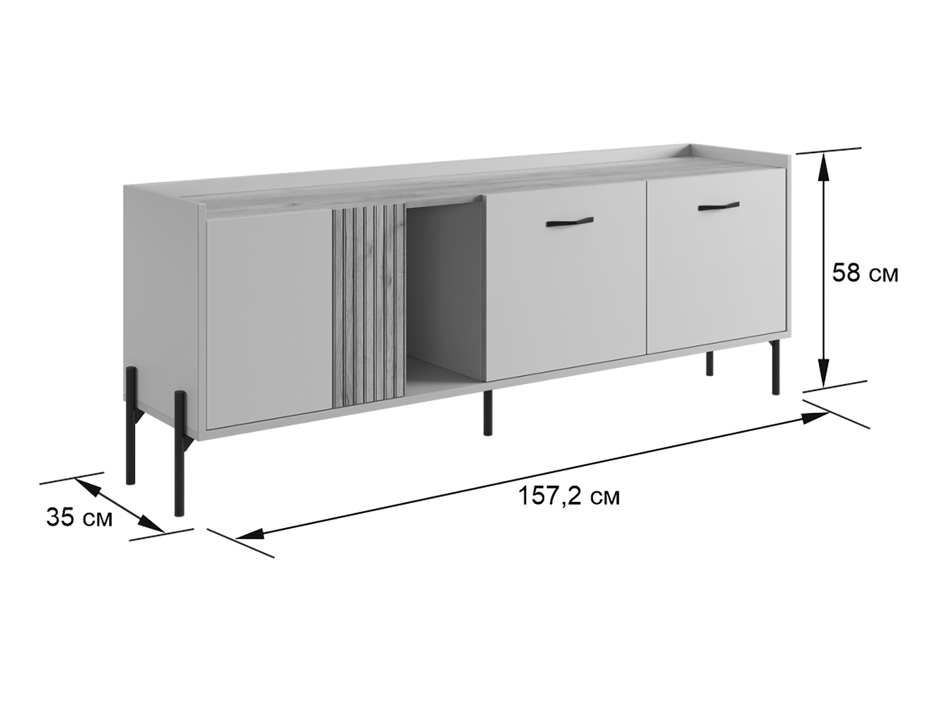 - ТВ-тумба: 58 х 157,2 х 35 см.