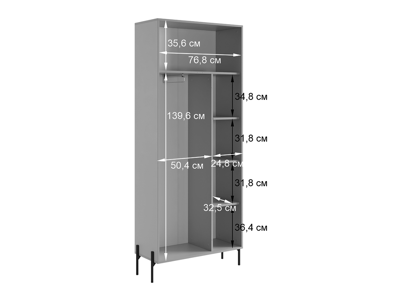 - Шкаф: 195 х 84 х 35 см.