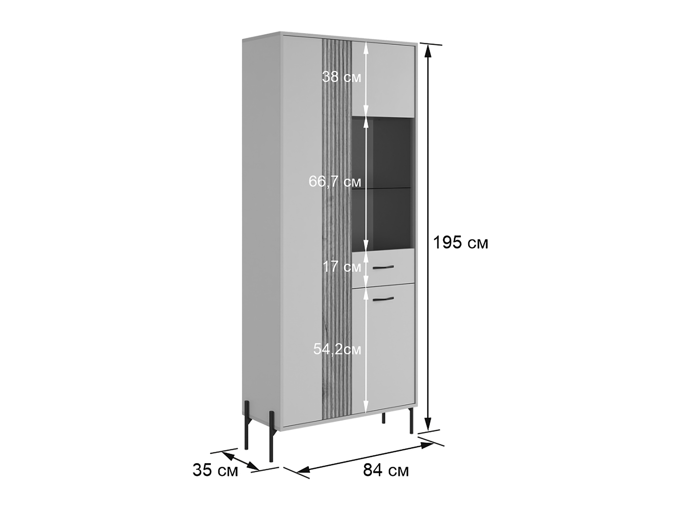 - Шкаф-витрина: 195 х 84 х 35 см.