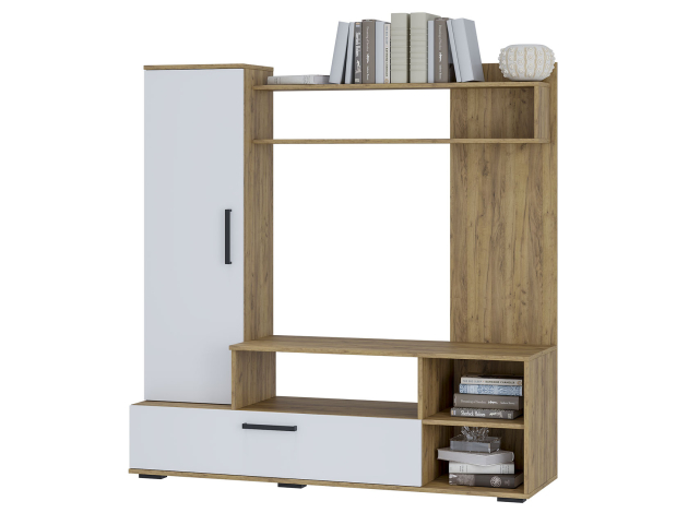 Миниатюрная гостиная Евро создаст уют даже на малой площади. Модель представляет собой функциональный элемент, который поможет как в хранении вещей, так и организации семейных просмотров фильмов.