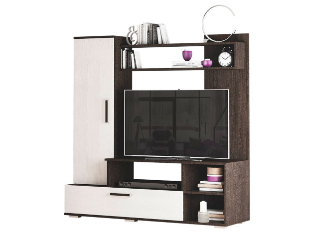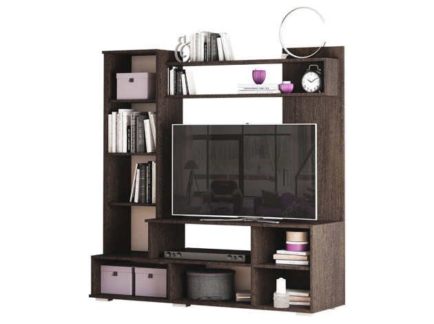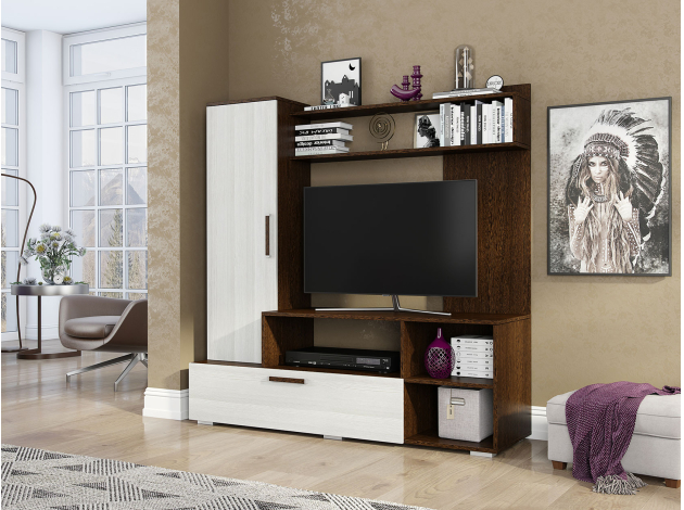 Миниатюрная гостиная Евро создаст уют даже на малой площади. Модель представляет собой функциональный элемент, который поможет как в хранении вещей, так и организации семейных просмотров фильмов.