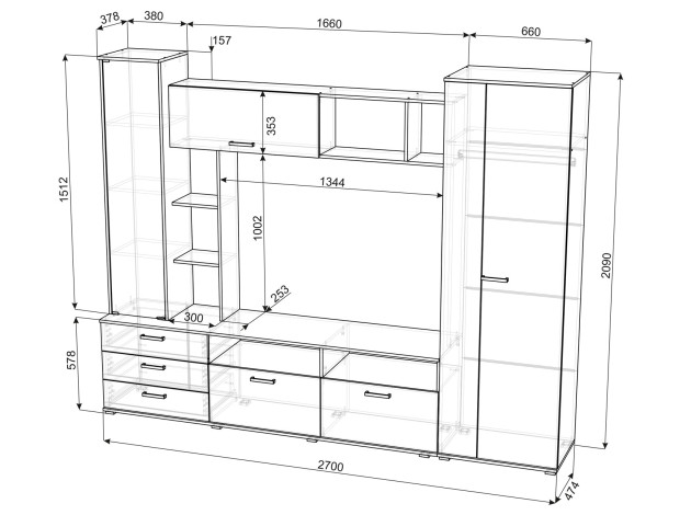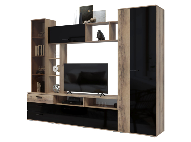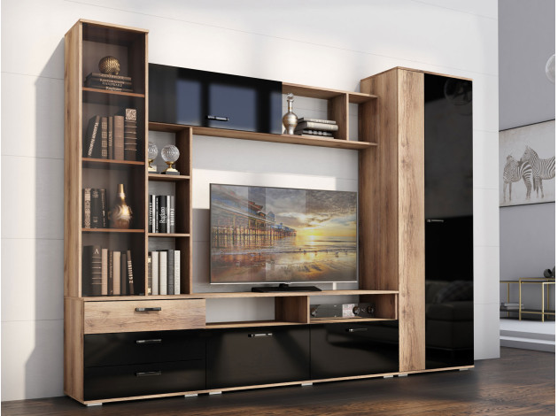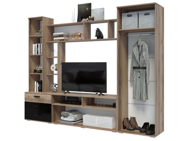 Гостиная Крокус станет отличным вариантом для обустройства ТВ-зоны и хранения всех необходимых вещей. Открытые полки позволят оживить обстановку аксессуарами, фотографиями в рамках и комнатными растениями. Стеклянная дверца откроет обзор на содержимое, защищая его от пыли и влаги. Для хранения одежды предусмотрено вместительное отделение с продольной штангой для вешалок и антресольной полкой, а также несколько закрытых отделений.