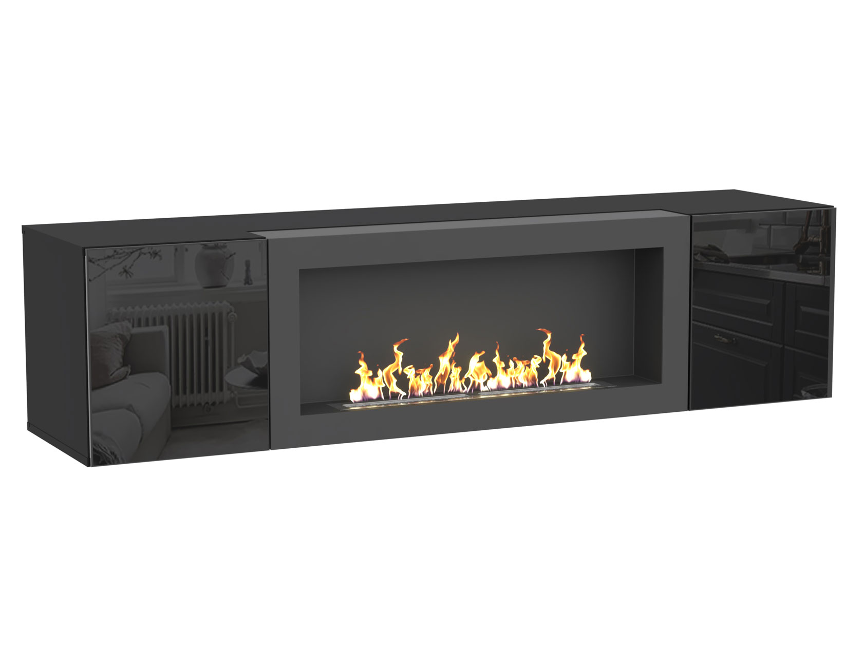 - Навесной шкаф с биокамином: 40 х 160 х 40 см.