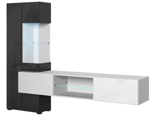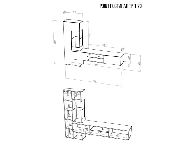 Модульная гостиная Поинт сочетает компактность, функциональность и стильное монолитное исполнение. Элементы позволят разместить широкоформатный телевизор и видеотехнику, хранить сложенную одежду, литературу, предметы декора и другие вещи. Стеклянные вставки откроют обзор на содержимое, защищая его от пыли и влаги, а стеклянные полки придадут расположенным на них предметам эффект парения.