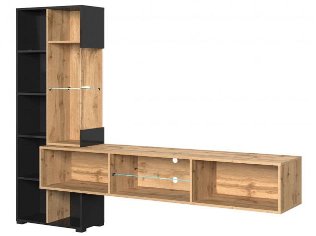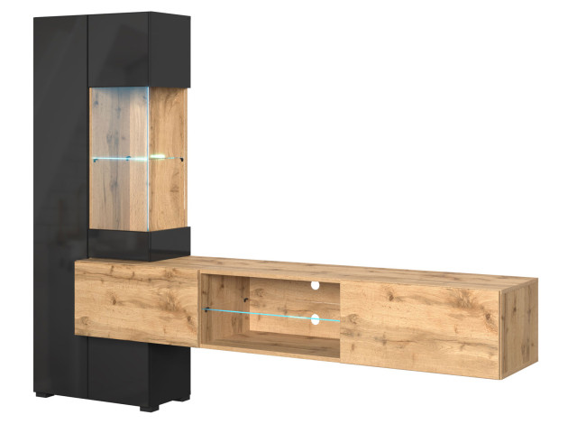 Гостиная Поинт Дуб Вотан / Черный / Черный глянец С подсветкой