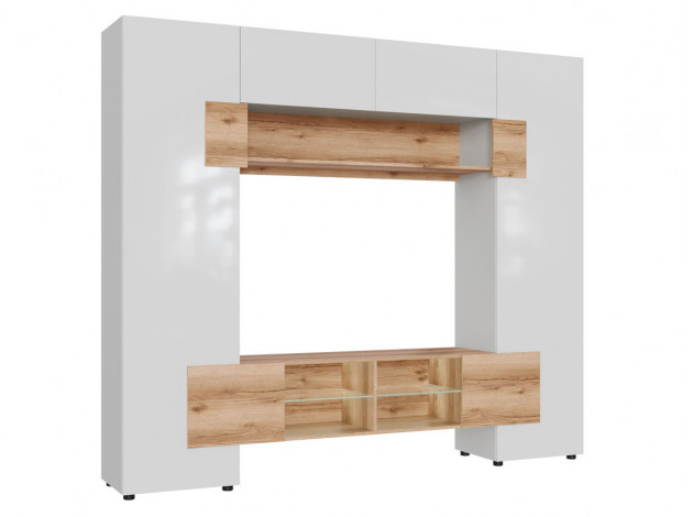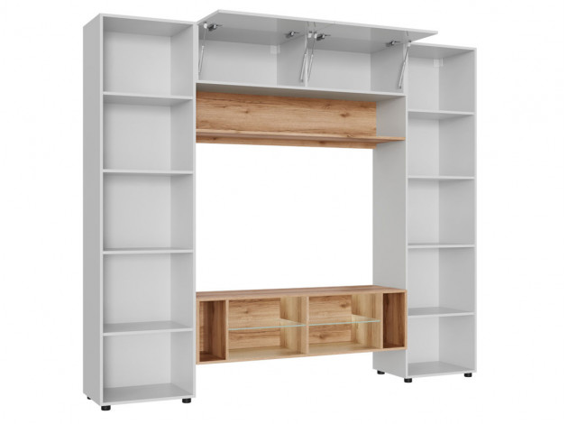 Гостиная Ривьера — стильное и практичное решение для меблировки помещения. Отделения для хранения порадуют своей вместительностью. Пеналы имеют декоративные накладки, которые заменяют ручки. Ниша позволит установить телевизор с большой диагональю.