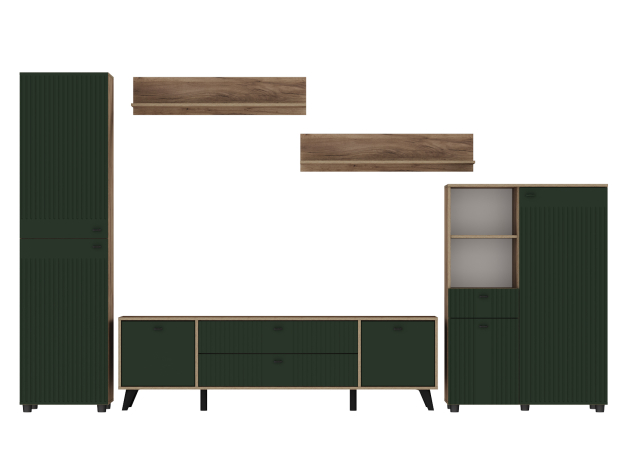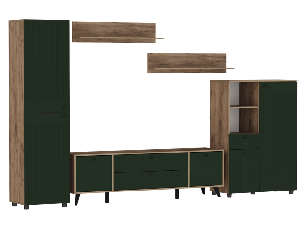 Гостиная Милан Стандарт представляет идеальный баланс эстетики и продуманного функционала. В наборе есть всё необходимое для удобного хранения вещей и мультимедийной техники, а также размещения декора. Матовые фасады и изящные ручки подчеркивают утонченность мебели, а сочетание фактуры дерева с вертикальными линиями фрезеровки создает стильный и уютный интерьер.