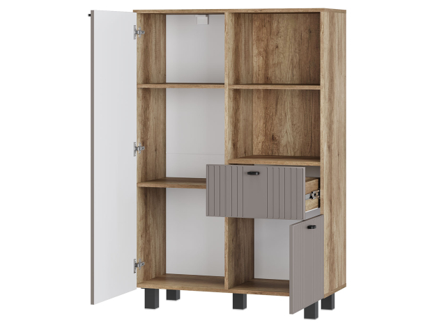 Гостиная Олива — прекрасное решение для создания уютной обстановки в едином стиле. Идеально подобранные элементы организуют пространство для размещения телевизора, сопутствующей техники и хранения всех необходимых вещей. Изюминка мебели — матовые фасады с тонкими линиями фрезеровки.