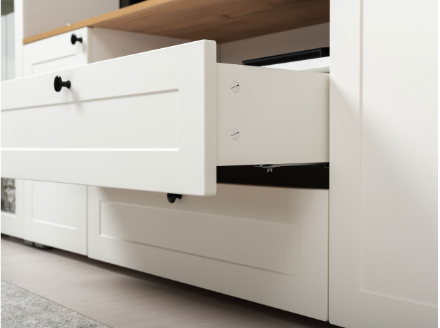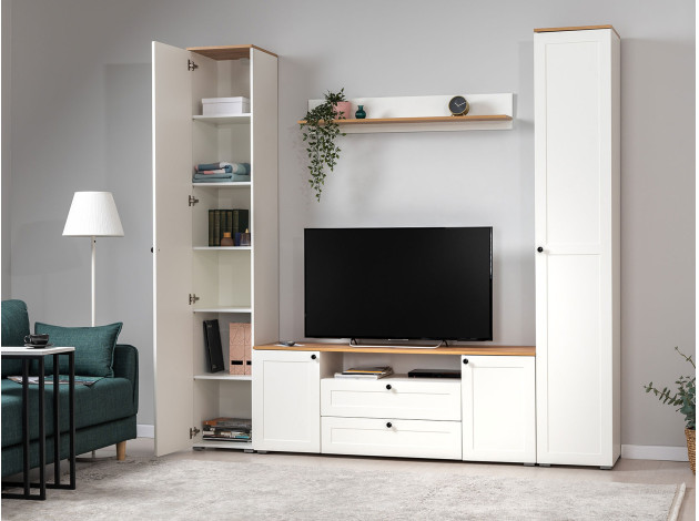 Элегантная гостиная Остин объединяет несколько удобных элементов для хранения. Рамочные фасады с контрастными ручками отлично сочетаются с разными интерьерными стилями. Внутри найдется место для любых нужных вещей: от игровой приставки и наушников до коллекции книг и теплых пледов.