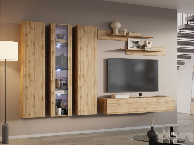 Гостиная Поинт позволит создать трендовую обстановку и продуманную до мелочей систему хранения. Гладкие фасады, отсутствие ручек и необычная геометрия делают набор элементов законченным мебельным ансамблем. Закрытые отделения, лаконичные навесные полки и вставки из стекла поддерживают визуально легкий стиль оформления комнаты.