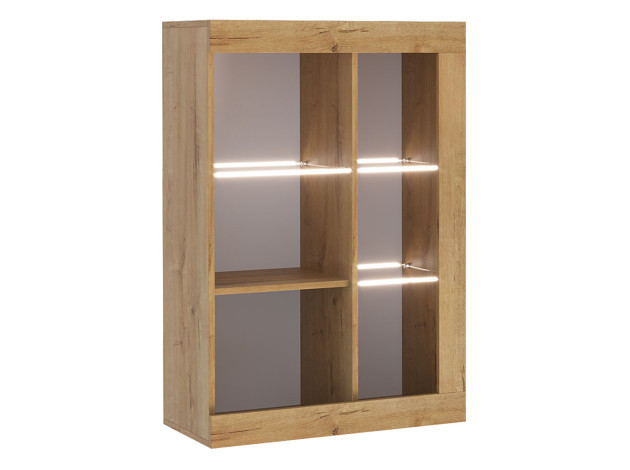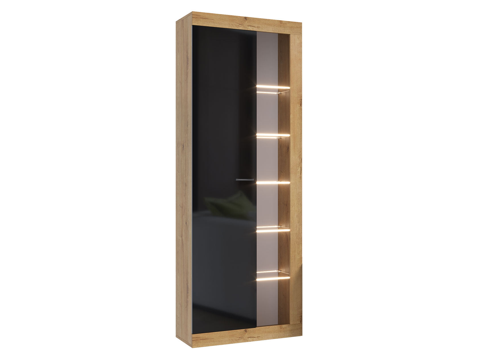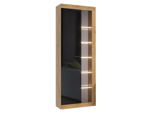 Гостиная Прага с навесным шкафом Дуб Вотан / Черный глянец С подсветкой