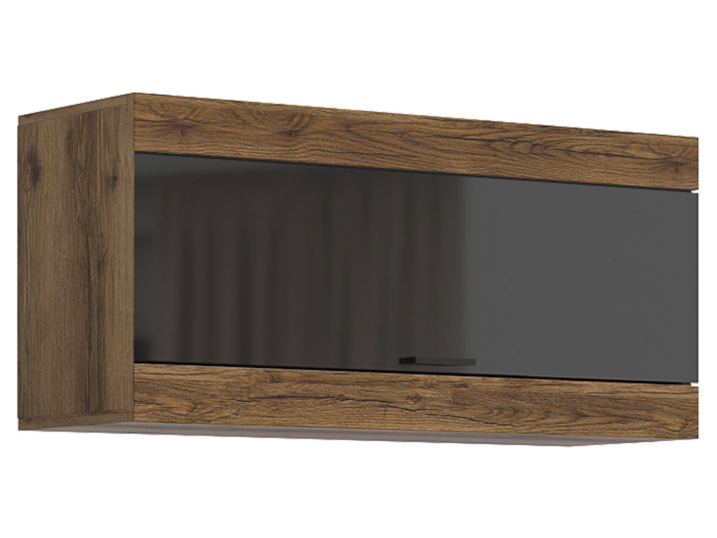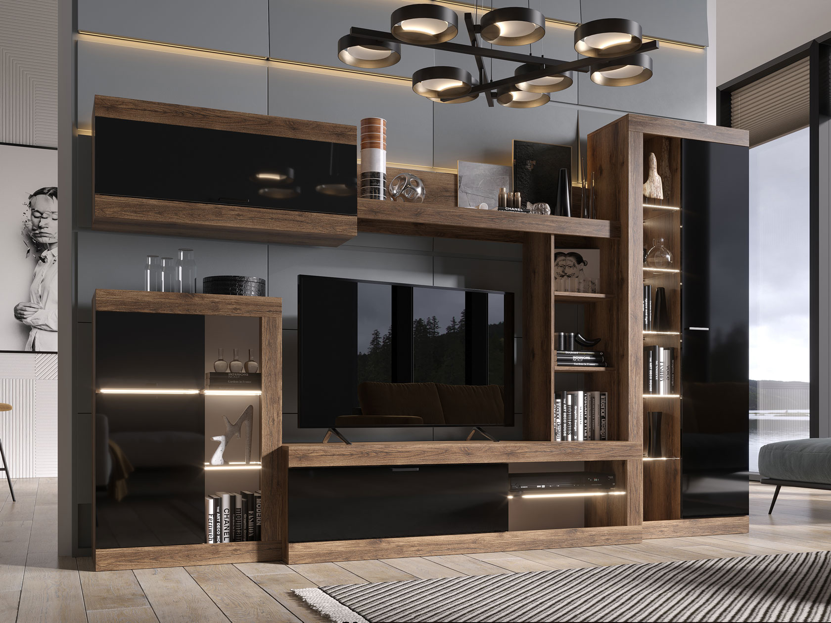 Гостиная Прага с навесным шкафом Дуб Делано / Черный глянец С подсветкой